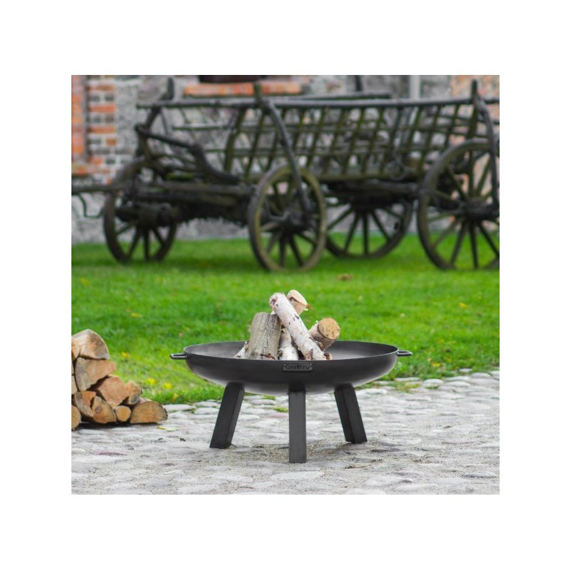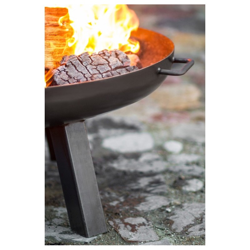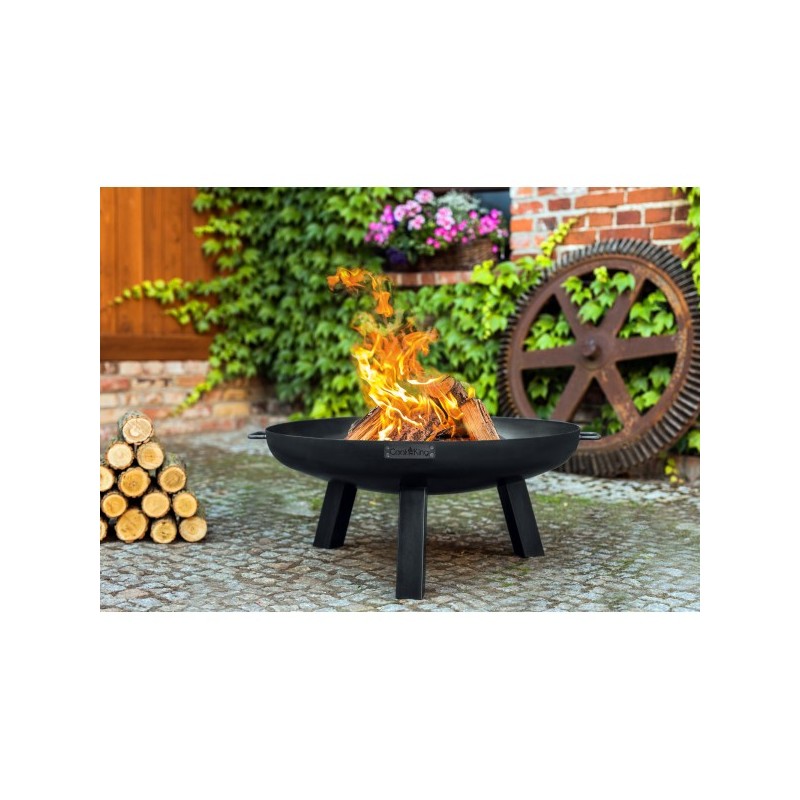 Kształt misy sprawia, iż palone w niej drewno nie rozprzestrzenia się nawet podczas silnego wiatru. Dzięki rączkom przyspawanym do boków misy palenisko można łatwo przemieścić z miejsca na miejsce oraz rozpalić ogień na każdym gruncie w zależności od potrzeby. Nasze paleniska wykonane są z surowej stali, co oznacza, że mogą mieć inny odcień niż produkt przedstawiony na zdjęciach. Jest to naturalna rzecz w przypadku stali, jednak nie wpływa to negatywnie na funkcjonalność oraz wytrzymałość produktu.